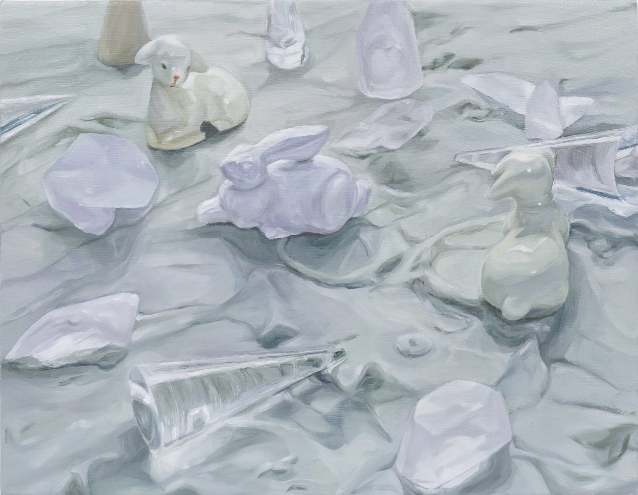 Executed in oil on canvas, her works maintain a sense of intimacy while preserving a subtle distance that resists easy entry.